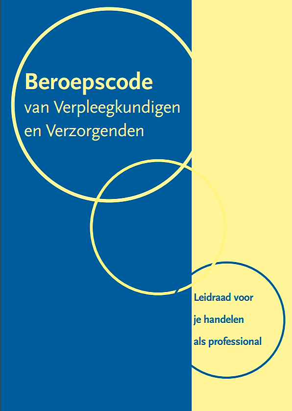 In de Beroepscode staan de ethische uitgangspunten voor de beroepsuitoefening van verpleegkundigen en verzorgenden beschreven. Dit biedt een samenhangend geheel van principes en regels over de uitoefening van het beroep als verpleegkundige of verzorgende. De Beroepscode is een leidraad bij het handelen en de verantwoording daarvan.